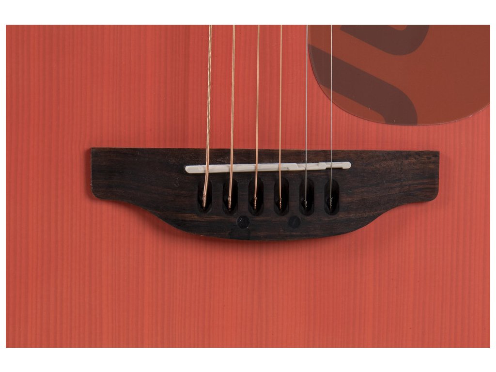Akustická kytara v originálním barevném designu z řady Color up your sound. Dřevo v kombinaci s oranžovou barvou (broskvový odstín) přidá vaší hře na jedinečnosti. Matné provedení, ochrana úderové desky. Kytara má nádherný zvuk a příjemně se na ni hraje.