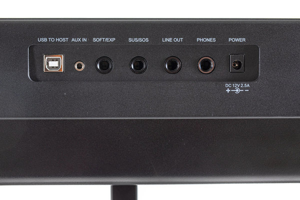 USB to Host - 3,5 mm Aux Input - 6,3 mm Soft/Expression pedál - 6,3 mm Sostenuto/Sustain pedál - 6,3 mm Line Out - 6,3 mm vstup pro sluchátka.