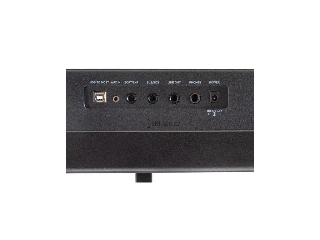 USB to Host - 3,5 mm Aux Input - 6,3 mm Soft/Expression pedál - 6,3 mm Sostenuto/Sustain pedál - 6,3 mm Line Out - 6,3 mm vstup pro sluchátka.