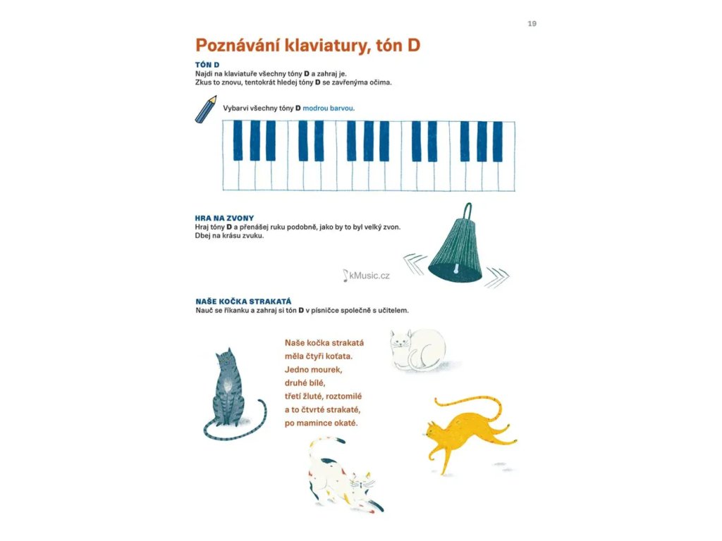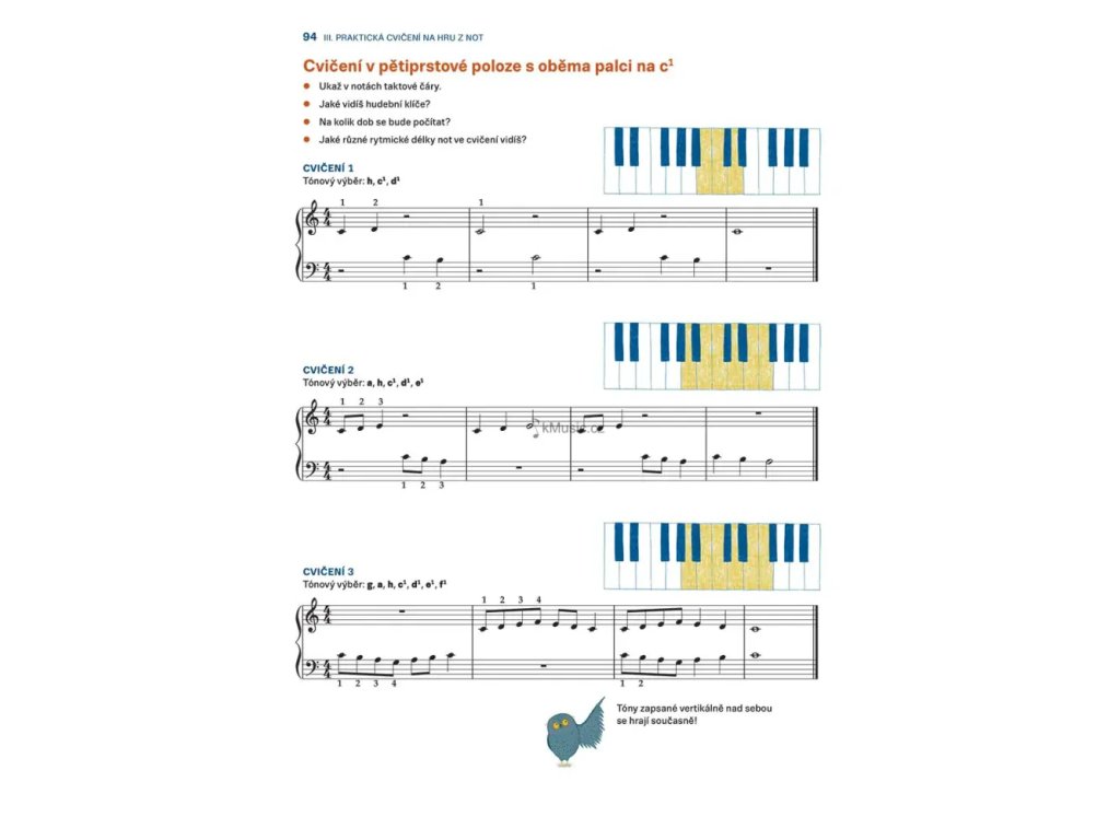 Publikace určená začínajícím pianistům ve věku 5-7 let, podle potřeby ji ale mohou využít děti mladší či starší. Lze ji používat samostatně nebo v kombinaci s dalšími výukovými materiály. Jako doprovodný materiál poslouží i online audionahrávky všech cvičení a skladeb.