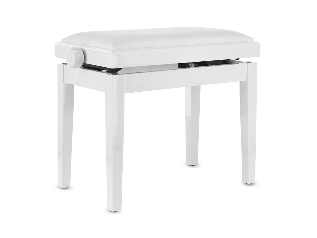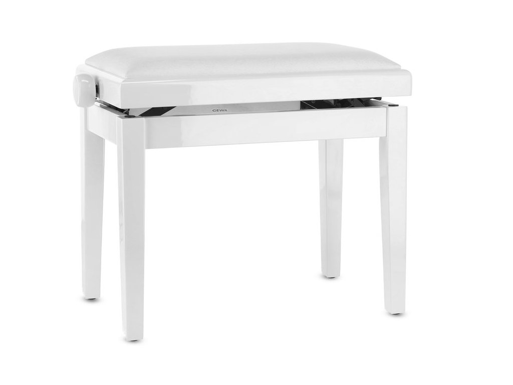 GEWA Klavírní stolička Deluxe Vinyl - bílý lesk, sedák bílá koženka