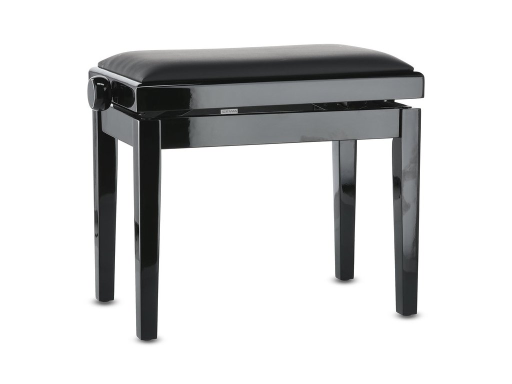 GEWA Klavírní stolička Deluxe Vinyl - černý lesk, sedák černá koženka