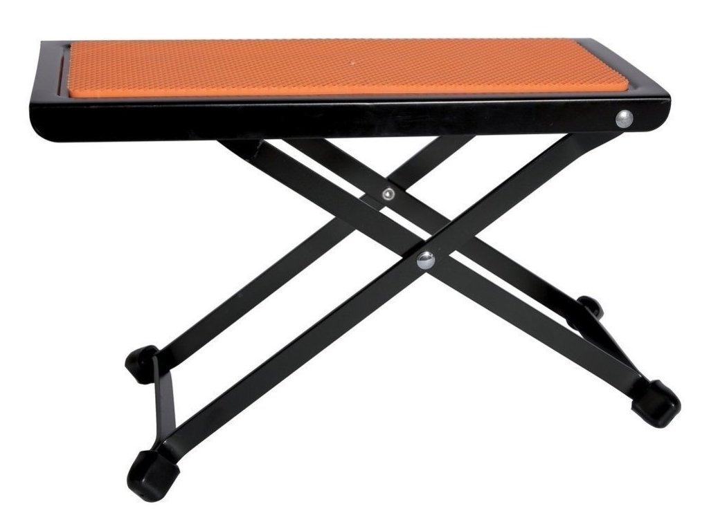 Kytarová stolička se používá pod levou nohu při hře na kytaru. Má šikmou protiskluzovou plochu pro pohodlné opření nohy. Je výškově nastavitelná v rozmezí 12 - 23 cm (ve 4 polohách) a dá se složit do vodorovné polohy pro snadné přenesení a uschování třeba do obalu na kytaru.