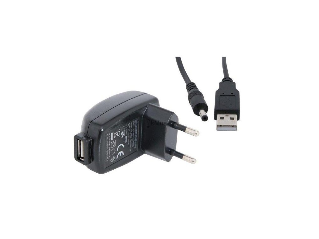 USB napájecí adaptér s EURO zástrčkou, 5 V/1 A. Vhodný k lampičce pro notový pult.
