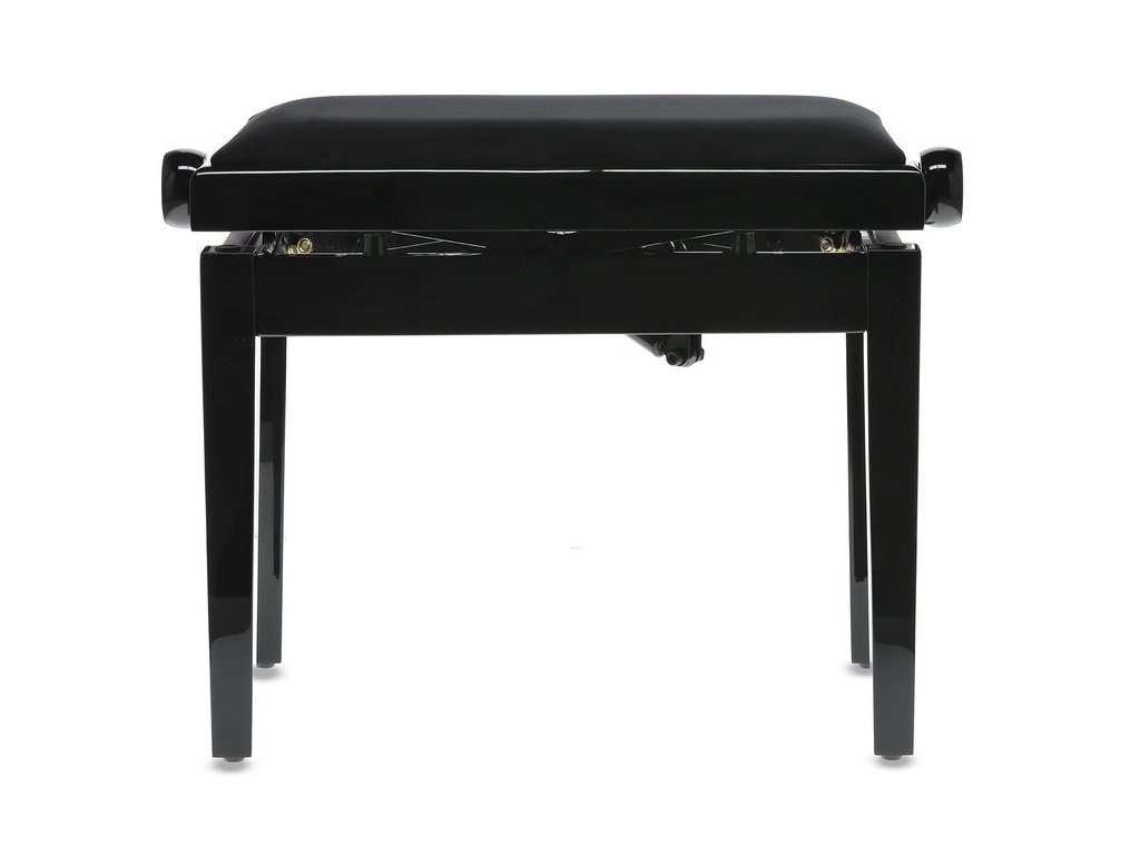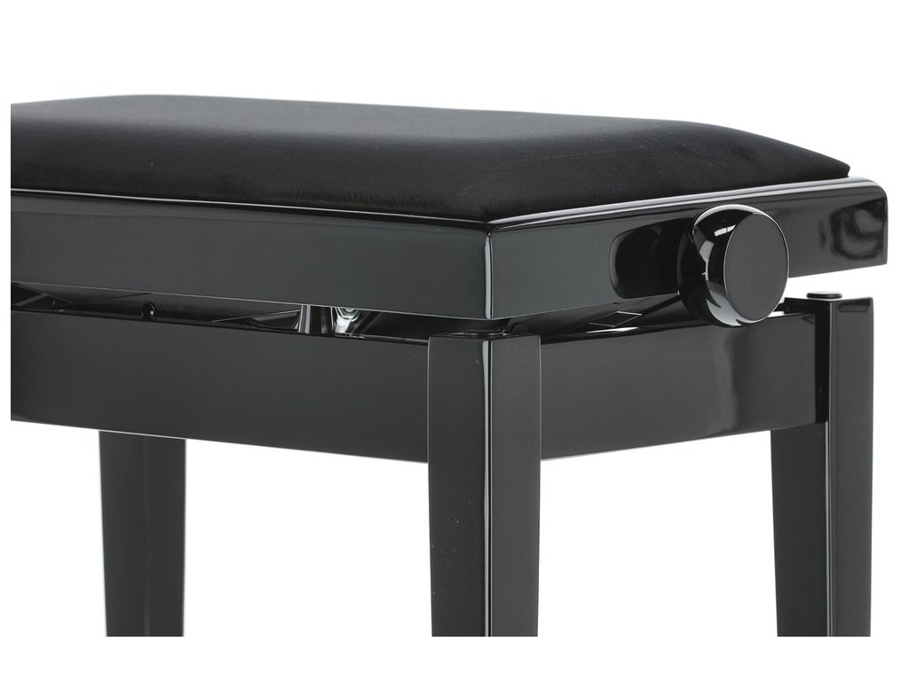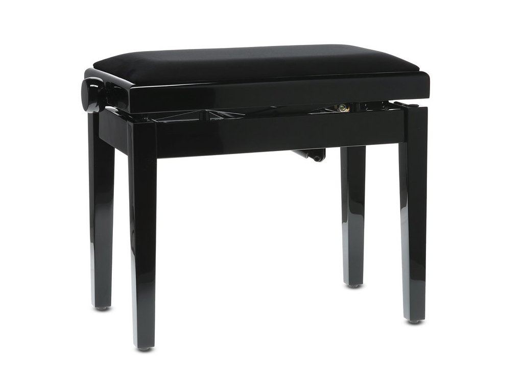 Moderní židle ke klavíru v černém vysokém lesku s komfortním nastavením výšky pomocí dvou vysoce tlakových pružin. Pohodlné sezení, výborná stabilita, nosnost až 200 kg.