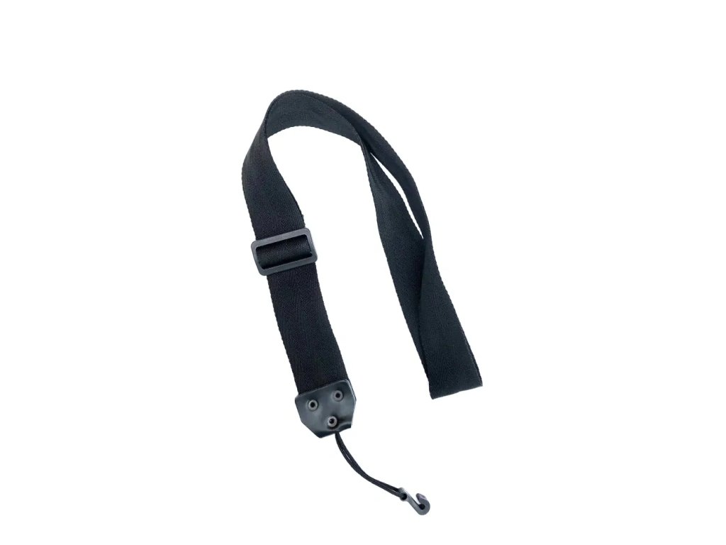 Černý nylonový popruh určený pro koncertní kytaru ("španělku") a ostatní nástroje, pro které není vhodný běžný popruh. Popruh si hráč navleče na krk, obepne jím kytaru zespodu a plastový háček upevní do rezonančního otvoru kytary.