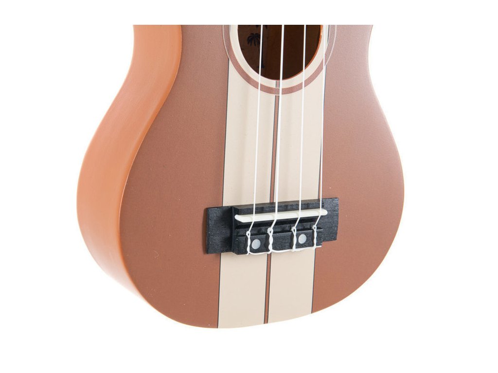 Hmatník ukulele má 16 pražců, menzuru 344 mm a šířku sedla 35 mm. Barva těla je středně hnědá, na přední desce jsou béžové pruhy.