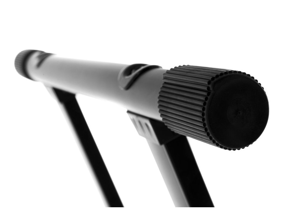 Dvojitý stojan je určen pro keyboard nebo stage piano s maximální hmotností 30 kg. Je praktický, skládací a dobře přenosný. Kovové dvojité výztuhy zajistí dobrou stabilitu, lze polohovat na výšku 70 - 100 cm. Hloubka stojanu je 40 cm. Baleno jednotlivě v demontu, montáž je snadná a rychlá. Hmotnost 4,2 kg.