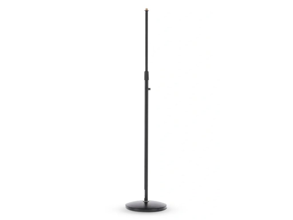 Stojan na mikrofon s kulatým litým podstavcem o průměru 25 cm. Má dobrou stabilitu a výsuvnou výškou 87-155 cml Jednoduše a rychle se nastavuje pomocí šroubovací objímky. Podstavec obsahuje gumové podložky proti došlapovému hluku.