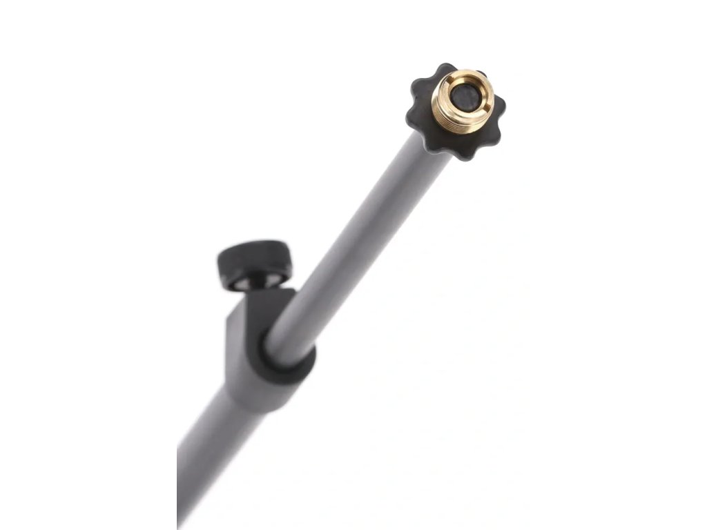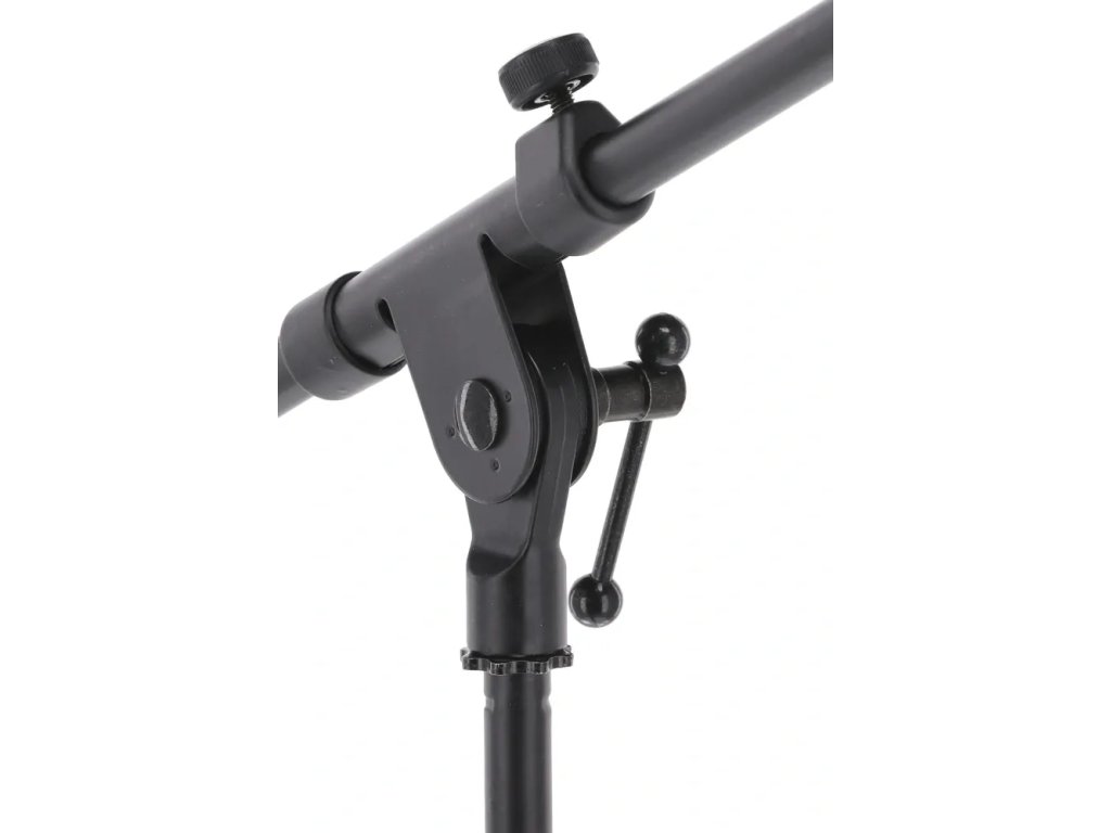 Kovový stojan na mikrofon, který si snadno nastavíte na výšku 90 - 160 cm. Má pevný odlitý podstavec a tři skládací nožky, které mají na konci tlumiče proti došlapovému hluku. Zároveň také chrání podlahu před poškozením. Rádius plochy pro postavení stojanu je 40 cm. Šibenice má délku 81 cm, je upevněna v kovovém pouzdru a lze ji jednoduše polohovat.