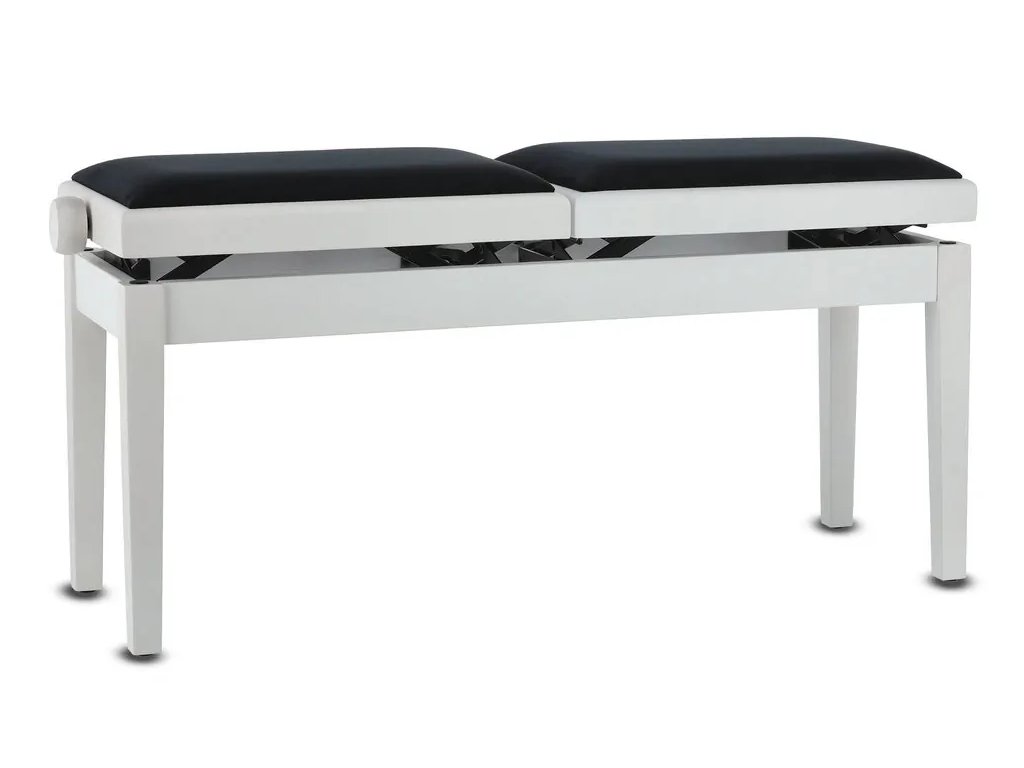 Židle ke klavíru Deluxe Double v bílém matu, je ideálním pomocníkem při čtyřruční hře jak ve škole, tak v domácnosti. Nemusíte shánět dvě stoličky k pianu.