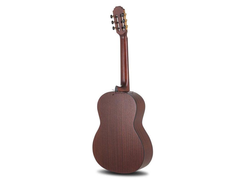 Klasická kytara s masivní cedrovou horní deskou, originál strunami Hannabach a karbonovou výstuží krku. Krásné barevné provedení, matné lakování a mozaiky kolem rezonančního otvoru.
