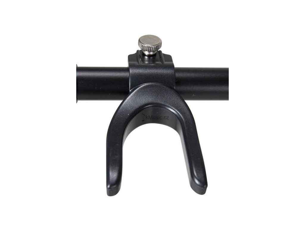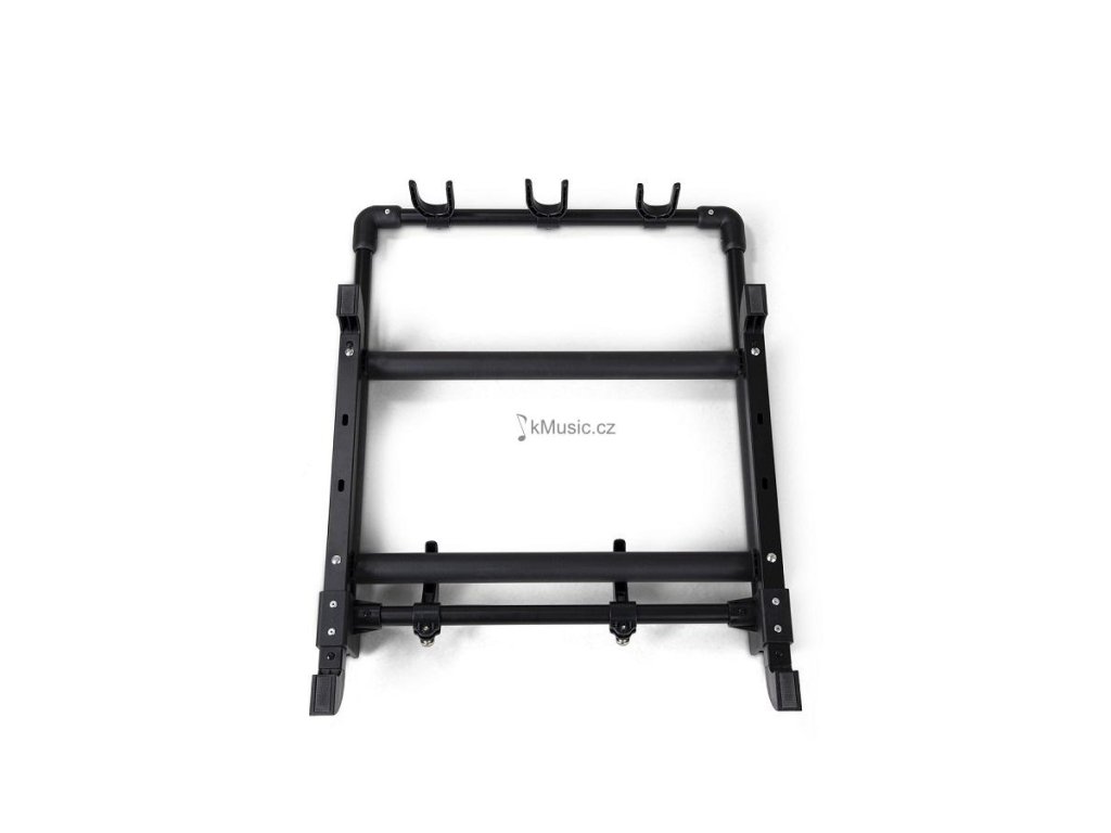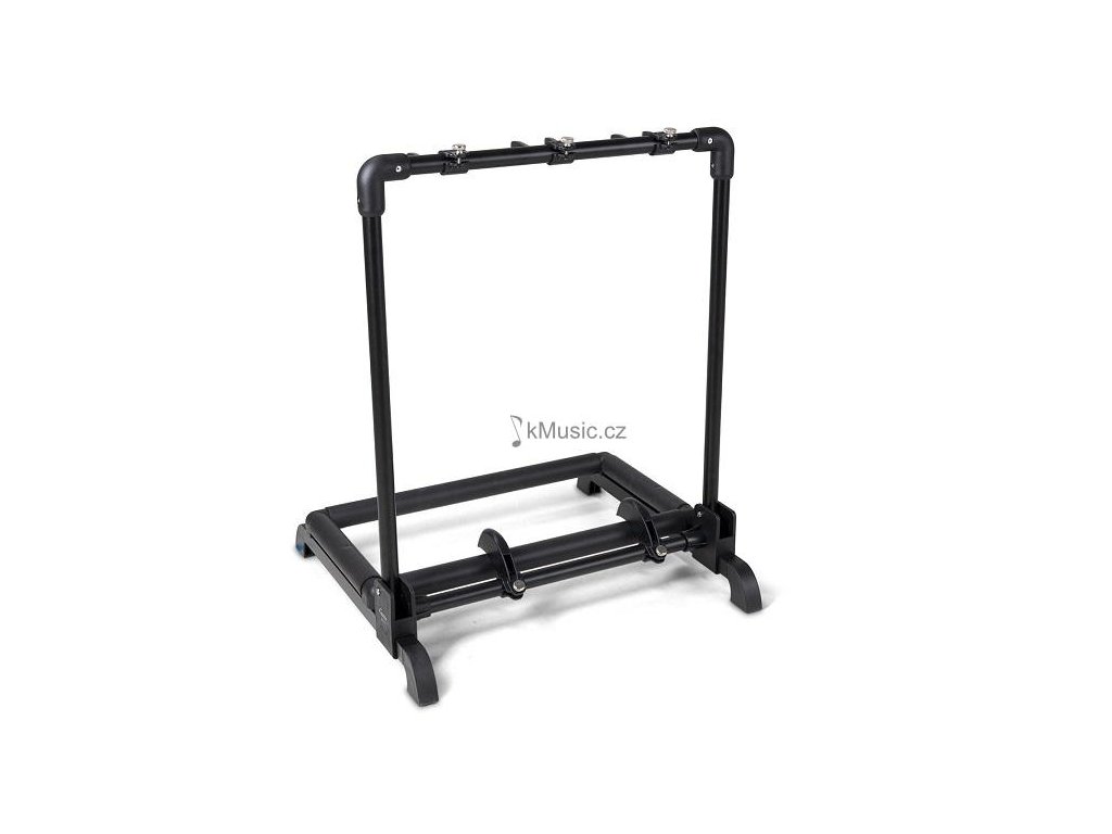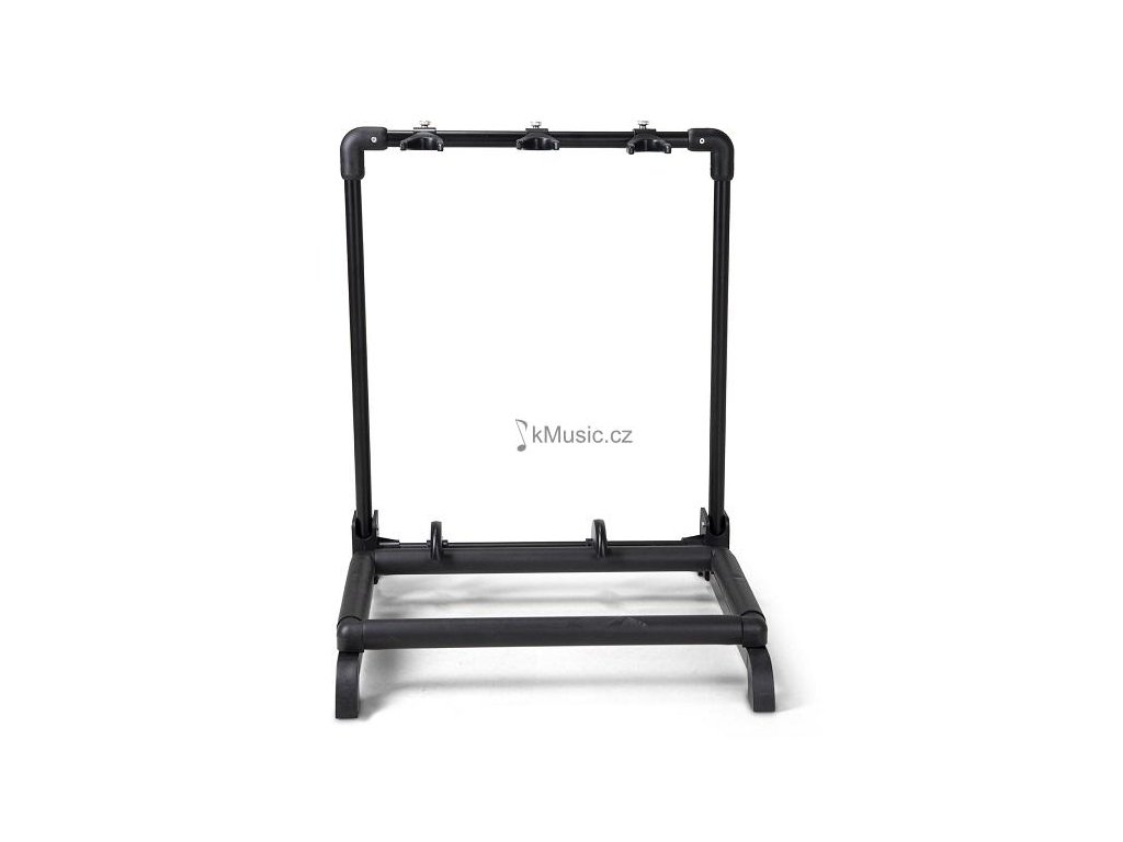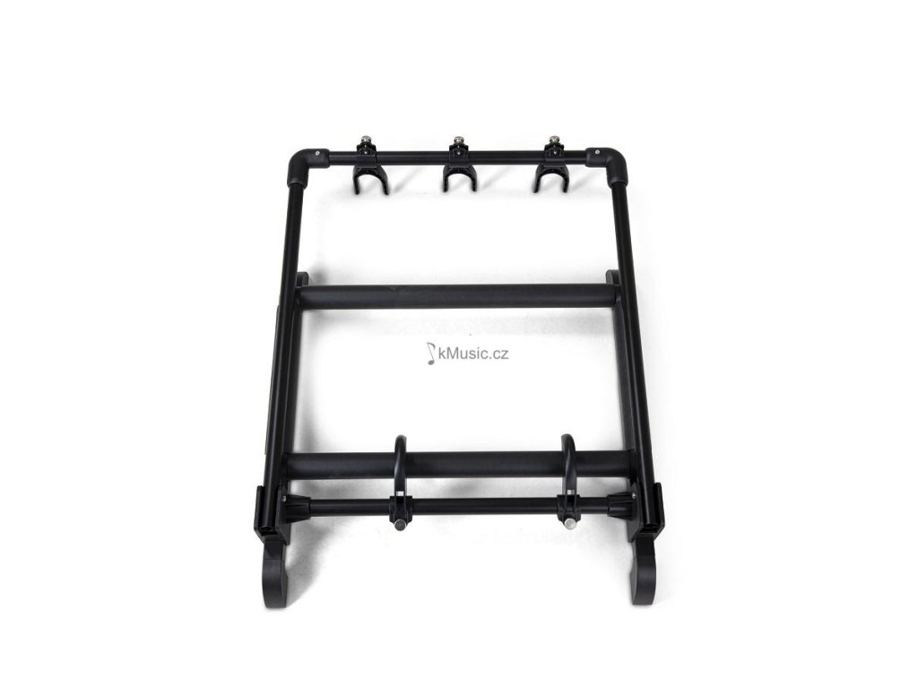 Praktický držák na 3 kytary. Vhodný pro různé typy kytar - klasické, akustické, elektrické, elektroakustické (Roundback kytary) i baskytary. Lze nastavit výšku stojanu a tím vhodné umístění krku nástroje. Uchycení lubů zabrání poškození nástroje. Stojan je skládací, s měkkým polstrem na rámu.