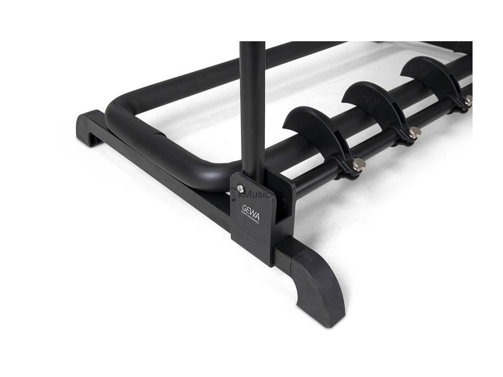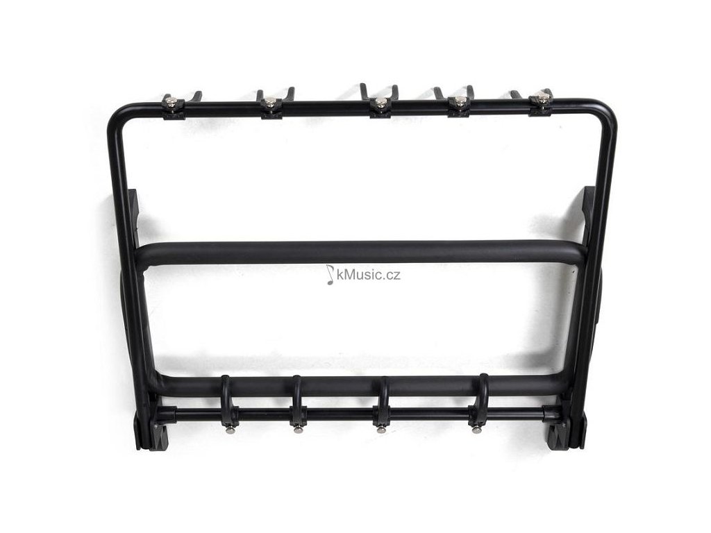 Praktický stojan až pro 5 kytar. Vhodný pro různé typy kytar - klasické, akustické, elektrické, elektroakustické (Roundback kytary) i baskytary. Lze nastavit výšku stojanu a tím vhodné umístění krku nástroje. Uchycení lubů zabrání poškození nástroje. Stojan je skládací, s měkkým polstrem na rámu.