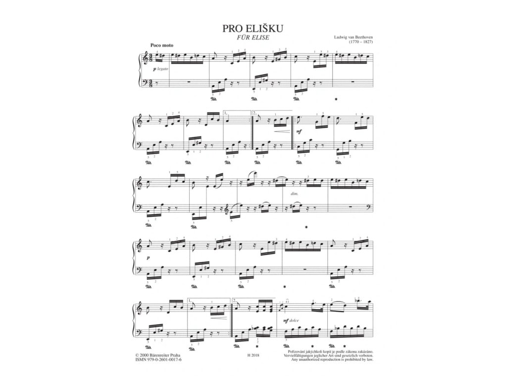 Pro Elišku - Ludwig van Beethoven - noty na klavír