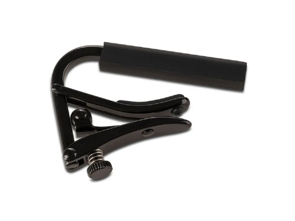 Originální profesionální kapodastr určený pro kytary se širokým absolutně plochým hmatníkem s nylonovými strunami. Kapodastr z elegantní řady Capo Noir je vyroben z mosazi s povrchovou úpravou černý chrom.