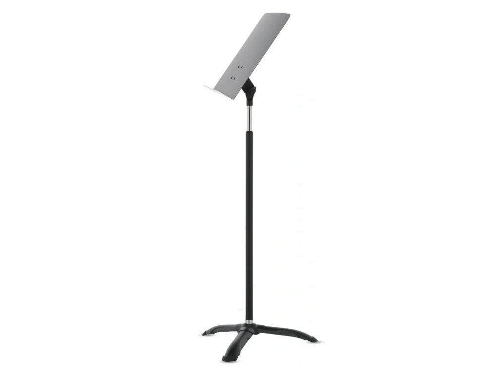 Velmi pevný a stabilní kovový stojan na noty. Má pevný kovový podstavec. Stojan je plynule výškově nastavitelný pomocí pružinového mechanismu, a to v rozpětí 105 - 160 cm. Deska pultu pro noty je z kovu o rozměru 50,5 x 32,5 cm.