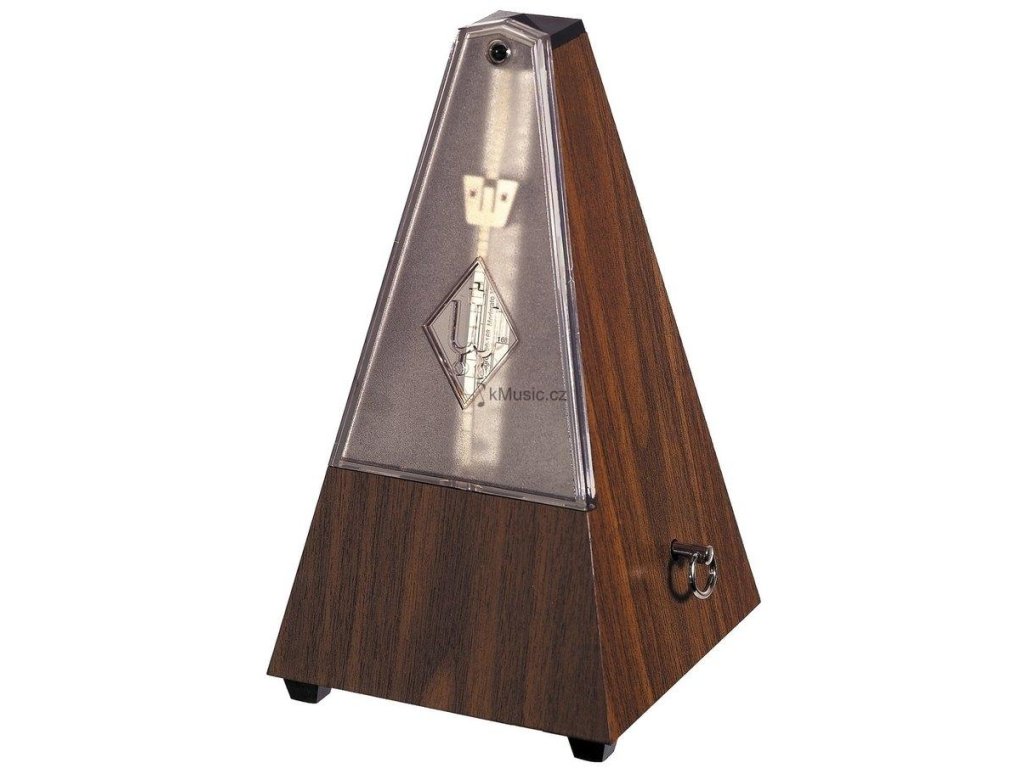 Metronom ve tvaru pyramidy s plastovým pláštěm. Na přední straně je plexisklový kryt. Mechanické natažení klíčkem, se zvonkem, který zdůrazňuje těžkou dobu.