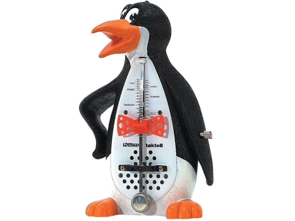 Mechanický metronom ve tvaru tučňáka s mašličkou zaujme především děti. Má tvrdý plastový plášť. Natahuje se klíčkem. Tempo se nastavuje pomocí rafičky se závažím. Na těle je zobrazena stupnice hodnot jednotlivých temp i s italským názvoslovím - Largo, Adagio, Andante, atd. Metronom je bez zvonku.