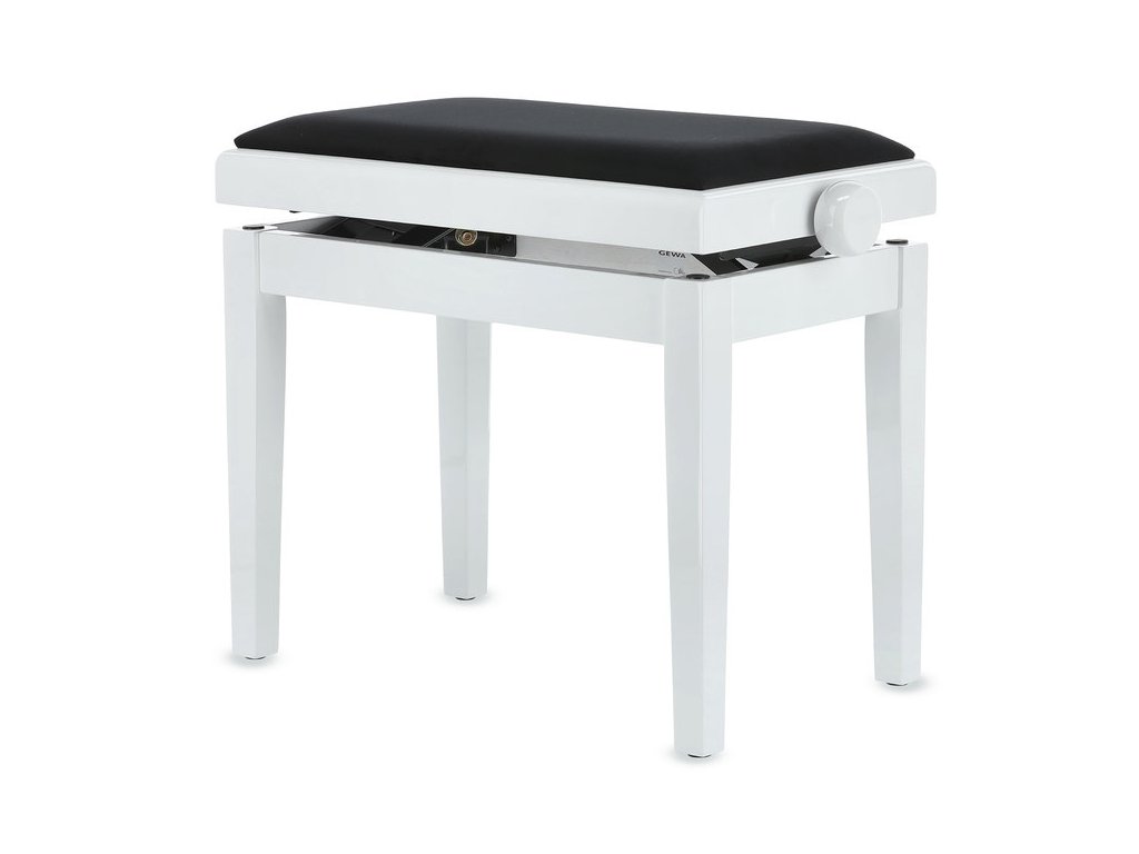 Židle ke klavíru Deluxe - bílý lesk, sedák černý